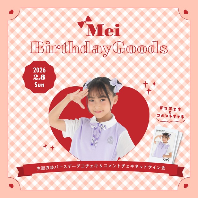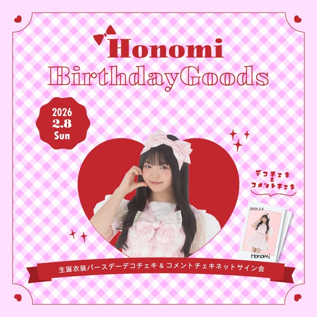 ˗ˋ Birthday Goods ˊ˗ MERUCHU「穂実」の誕生日を記念して、生誕衣装チェキセットを販売! 2026/2/8(日)開催ネットサイン会でコメント入れをしたチェキと一緒にお届け♡ ※都合により誕生日当日の配信ではございません。予めご了承いただきますようお願い申し上げます。 【商品内容】 生誕衣装デコチェキ 1枚 生誕衣装コメントチェキ 1枚 ※デコチェキに宛名は入りません 【ネットサイン会配信日時】 2026年2月8日(日)17:30~ https://www.showroom-live.com/r/diannaproject ⚠️ニックネームについて ニックネームが漢字・英語などの場合、正しい読み上げができない場合がございます。 また、ニックネームに不適切な内容が含まれていると運営が判断した場合には、変更・割愛させていただく場合がございます。ニックネームの指定が無い場合はご注文者様の下のお名前を記入させていただきます。 下記のニックネームは禁止とさせていただきます。 ※アーティスト名の使用 ※メッセージと誤認される可能性のあるもの ⚠️備考欄について タレントへのメッセージやご質問等の記入があっても、本人にお伝えすることはできません。 ⚠️ご入金について ネットサイン会時までに代金のご入金が確認できなかった場合、ニックネームをお呼びしてのコメント記入は出来ません。 ⚠️発送について ・配送日時のご指定はできません。 ・同一カートでのご注文のみ同梱可能です。 ・ネコポス便における郵便局留め、ヤマト運輸営業所留めには対応しておりません。 ・商品は準備が出来次第、順次発送となります。発送予定日はあくまで目安となりますことを予めご了承いただきますようお願いいたします。(同一カートでご購入の商品は、商品が全て揃ってからの配送となります) ⚠️キャンセル・返品について ご注文後にお客様事情による商品のキャンセルを承ることは出来かねますのでご注意下さい。
