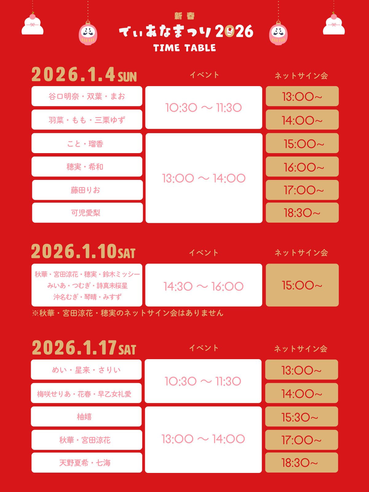 ※下記メンバーのイベント出演・グッズ販売・ネットサイン会はございません。