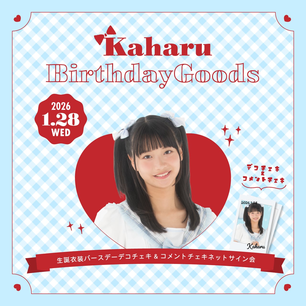 誕生日当日に実施するネットサイン会でコメント入れをしたチェキと一緒にお届け♡