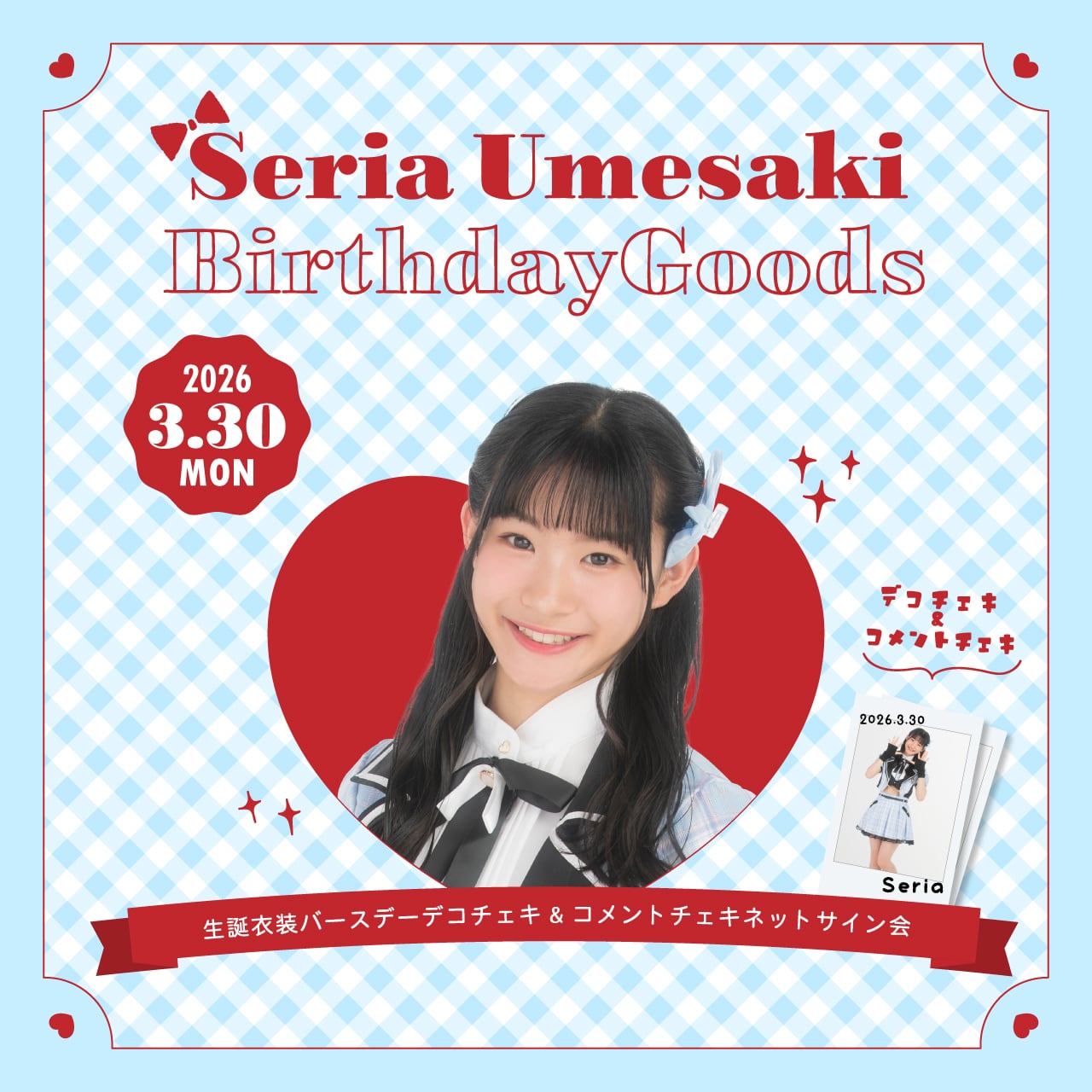 「梅咲せりあ」の誕生日を記念して、生誕衣装チェキセットを販売!